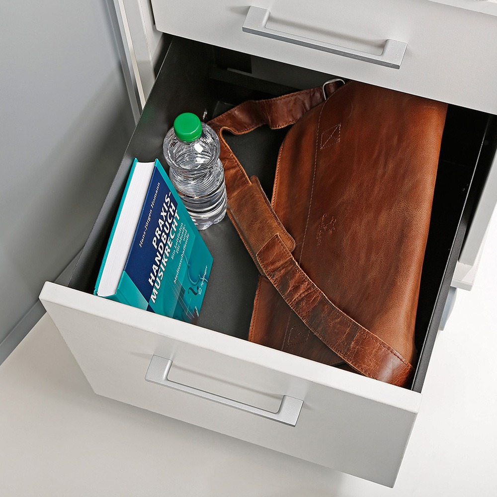 - 2 polc és 2 fiók dokumentumok és tartozékok áttekinthető tárolásához