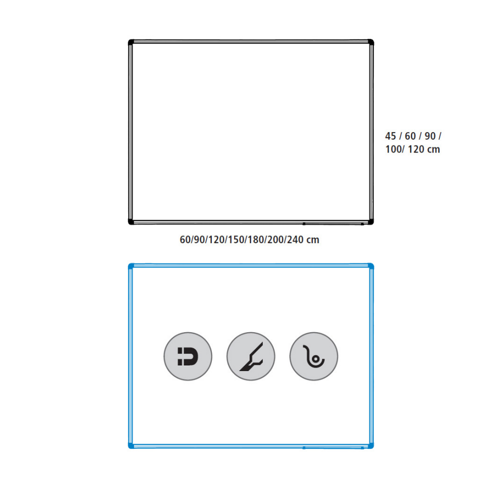 200x120 cm mágneses tábla, nagyon tartós fehér lakkozott felülettel, 5 év garanciával. Filctollal lehet rá írni. Vízszintes és függőleges rögzítési lehetőség. Alumínium keret. Írószertartó. A csavarok és a tiplik a csomag részét képezik.